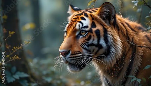 © Iqbal, Naklejka premium Stunning AI-Generated Tiger Wallpaper with Fierce and Majestic Details in a Striking Digital Art Style
