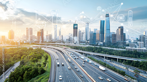 © Issara, Fototapeta premium stunning AI-powered car navigating a smart city, with sensors and algorithms controlling its movement