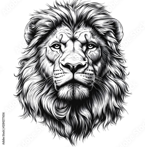 Fototapeta premium Stunning artistic design of a lion head tattoo featuring majestic mane and...