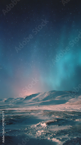 Naklejka premium Stunning aurora above ocean, vibrant colors illuminating the sky, tranquil...