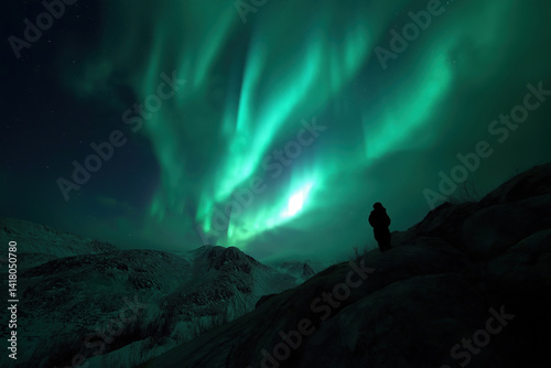 © Mselected, Obraz premium Stunning aurora borealis lights up the night sky over a remote landscape