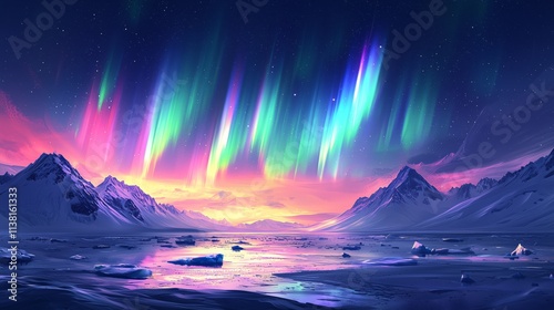 Naklejka premium Stunning Aurora Borealis Over Majestic Snowy Mountains at Dusk