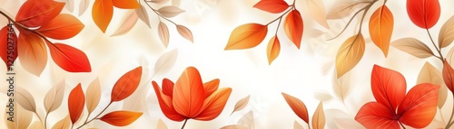 © Ndoomyim, Fototapeta premium Stunning autumn background, vibrant leaves and flowers in seasonal harmony
