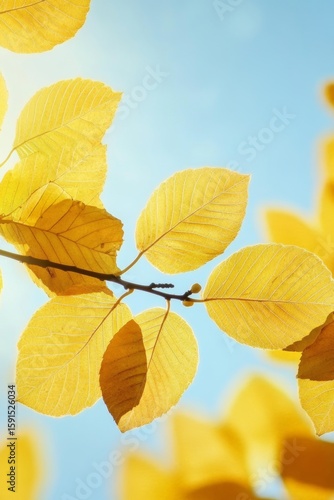 © Ilja, Fototapeta premium Stunning Autumn Scene with Vibrant Golden Yellow Leaves Under a Clear Blue Sky on a Sunny Day