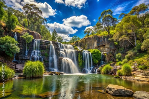 © prapatsorn, Fototapeta premium Stunning Belconnen Waterfall Panoramic View - Nature's Serenity and Beauty