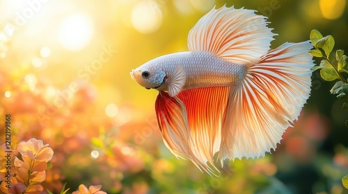 Obraz premium Stunning Betta Fish in Bloom, Sunset Garden Setting