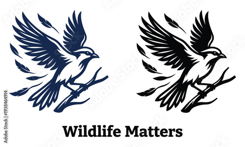 © MdRakibul, Obraz premium Stunning bird silhouettes in contrasting colors on white background