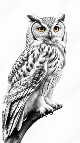 Fototapeta premium Stunning Black and White Owl Artwork Featuring Detailed Feather Sketch and Majestic Eyes