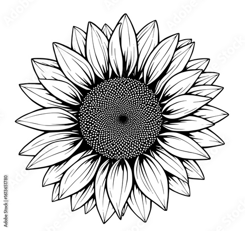 Fototapeta premium Stunning Black and White Sunflower Illustration: Detailed Botanical Art for...