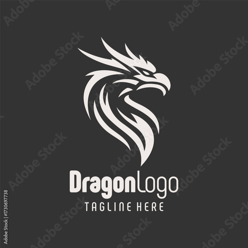 © DzgnVibe, Obraz premium Stunning Black White Dragon Vector