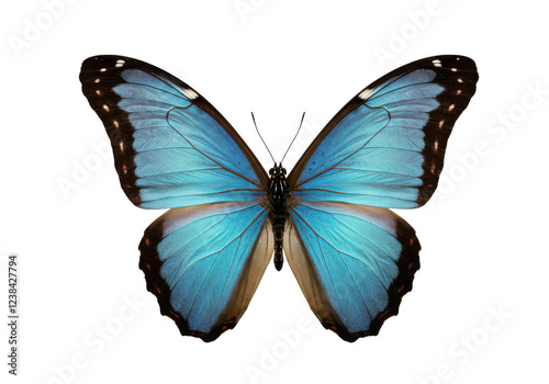 © Vooglo.com, Fototapeta premium Stunning blue butterfly with open wings displaying intricate black and white details, isolated on white background