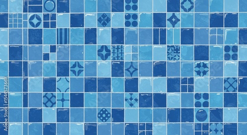 Fototapeta premium Stunning Blue Mosaic Tile Pattern Geometric Designs and Textures for Interior...