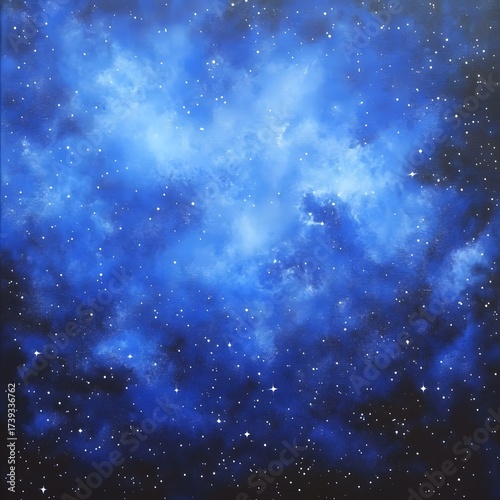© Mokles, Fototapeta premium Stunning Blue Nebula Watercolor Painting Space Galaxy Stars Night Sky