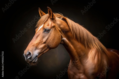 Obraz premium Stunning Brown Horse Head Portrait on Black Background, Majestic Equine...