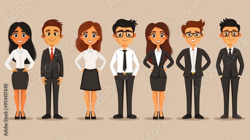 Naklejka premium Stunning Cartoon Characters and Business People Elements: A Dynamic and...