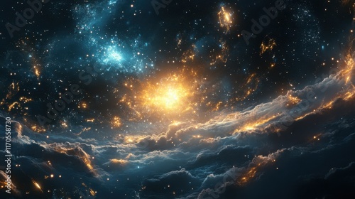 © DreamPointArt, Naklejka premium Stunning celestial display of meteor showers illuminating the night sky with vibrant colors and dense star patterns