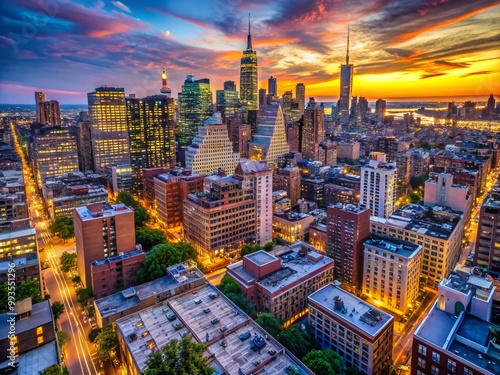 © Danicha, Obraz premium Stunning Chelsea Skyline in New York City Capturing Modern Architecture and Urban Vibes at Dusk