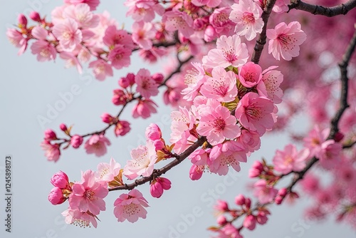 Obraz premium Stunning Cherry Blossom Flowers in Spring Pink Against White Background