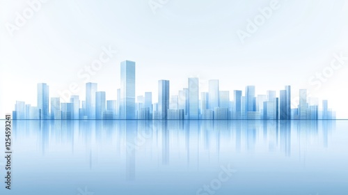 Fototapeta premium Stunning city skyline reflected in water, a captivating urban panorama cityscape
