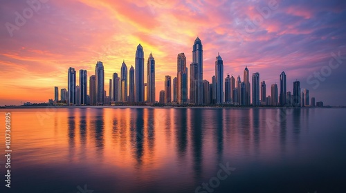 Fototapeta premium Stunning Cityscape at Sunset With Reflected Skyscrapers