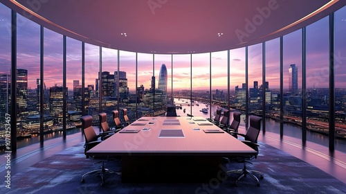 © Zahfran, Fototapeta premium Stunning Cityscape Boardroom with Panoramic Views of the Metropolis