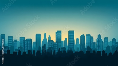 Fototapeta premium Stunning Cityscape Silhouette at Dawn, Urban Skyline Illustration