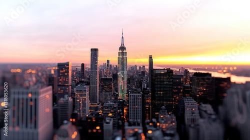 © Narongsag, Obraz premium Stunning Cityscape Sunset Skyscrapers Urban Skyline Golden Hour