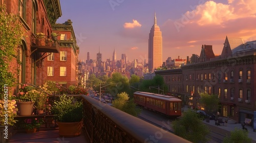 © QITIAN, Obraz premium Stunning cityscape with sunset hues, featuring the Empire State Building.