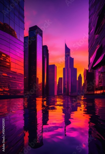 Obraz premium stunning cityscapes sunset brilliant vibrant hues capturing dramatic...