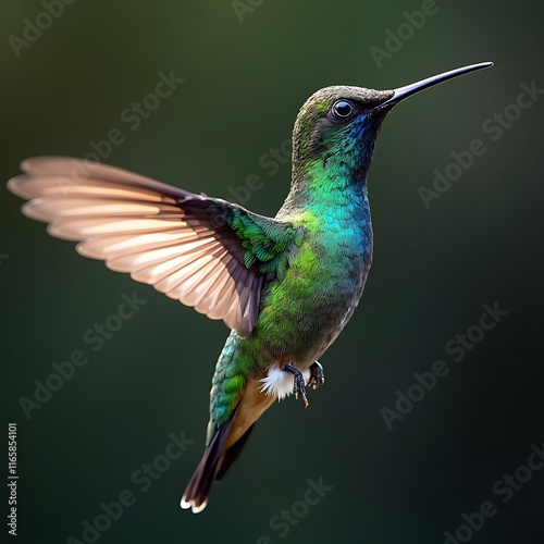 Fototapeta premium Stunning Close-up of a Colorful Hummingbird in Flight Captured in Nature's...