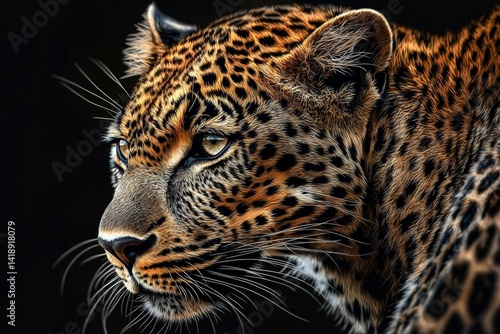 © Paul, Obraz premium Stunning close-up of a leopard set against a dark background.