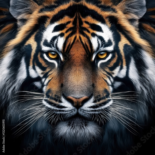 © Matija, Naklejka premium Stunning Close-Up of a Majestic Tiger Face with Intense Gaze and Detailed Fur Texture
