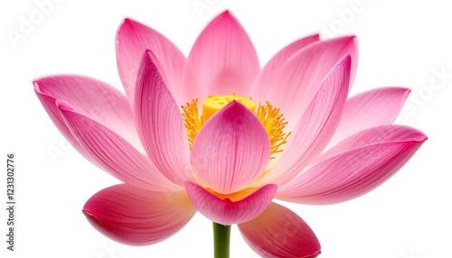 Naklejka premium Stunning Close-Up of a Pink Lotus Flower with Delicate Petals and Vibrant Yellow Stamen, Isolated on White Background
