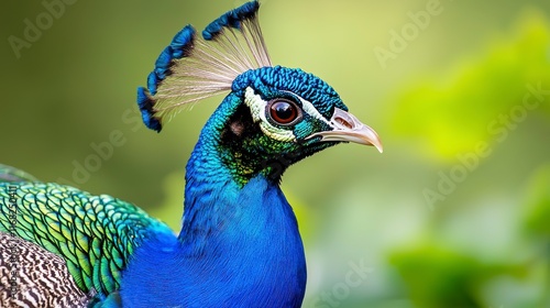 © Ronnakrit, Fototapeta premium Stunning Close-Up of a Vibrant Peacock with Rich Feather Details