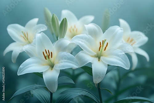 Fototapeta premium Stunning Close-up of Elegant White Lilies in Serene Teal Setting