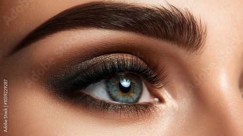 © Plaifah, Obraz premium Stunning Close-Up of Eye with Bold Makeup and Lashes