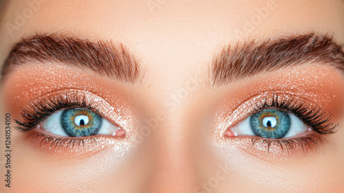 Obraz premium Stunning close-up of sparkling blue eyes with creative makeup details