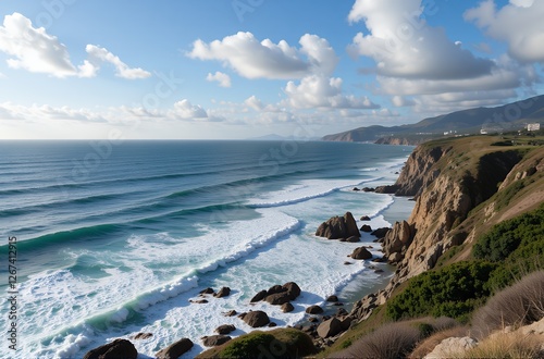 © SR Creative Idea, Naklejka premium Stunning Coastal Cliffs Ocean Waves Crashing on Rocky Shore Dramatic Seascape