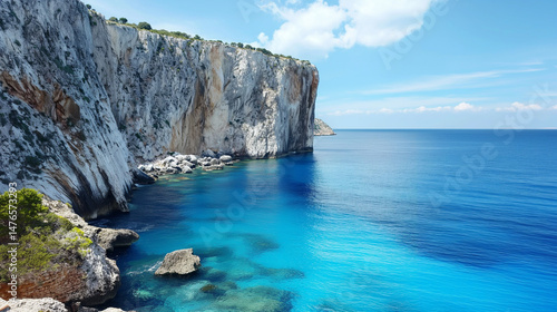 Fototapeta premium Stunning coastal cliffside with crystal-clear turquoise water under a bright...
