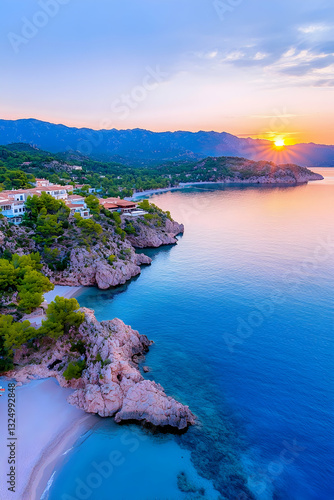Obraz premium Stunning coastal sunrise view over a secluded beach