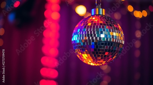 Fototapeta premium Stunning Colorful Disco Ball with Volumetric Lighting Creating an...