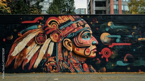 Naklejka premium Stunning Colorful Mural of a Native American Figure