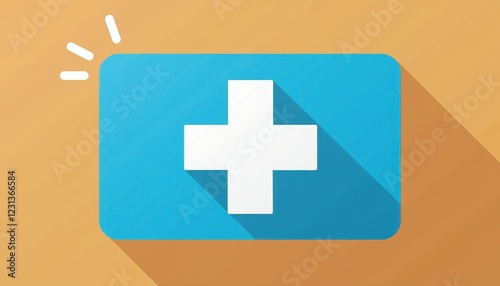 © Crazy Stock – Studio, Obraz premium Stunning Contrast: Blue Square Icon with White Cross on Vibrant Yellow Background