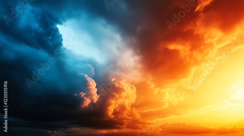© Ps_Studio21, Obraz premium Stunning contrast of vibrant clouds at sunset.