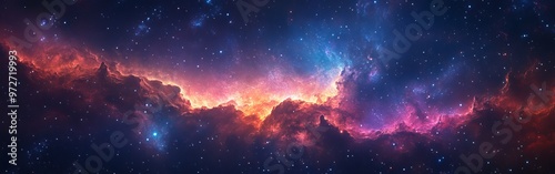 Naklejka premium Stunning cosmic cloud formation illuminating the night sky with vibrant...