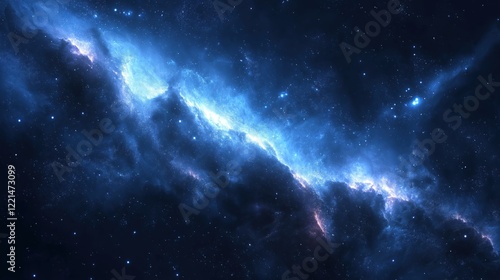 © Nowell Studio, Fototapeta premium Stunning cosmic galaxy with glowing blue nebula and sparkling stars