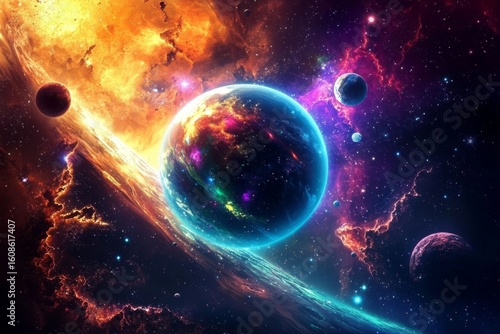 © Maple Stock Photo, Obraz premium Stunning cosmic imagery with an array of bright celestial bodies.