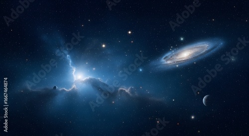 Fototapeta premium Stunning Cosmic Landscape Featuring A Beautiful Spiral Galaxy Surrounded by...