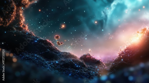 Obraz premium Stunning Cosmic Landscape with Nebulae and Stars in a Vibrant Night Sky