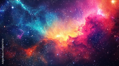 Obraz premium Stunning Cosmic Nebula Illuminated by Vibrant Colors in Deep Space with Glowing Stars